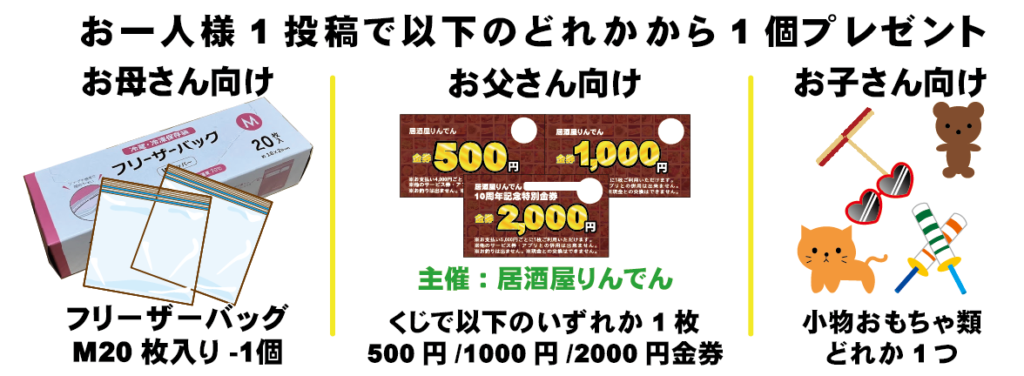 例: お子さん1回投稿 =1個プレゼント
